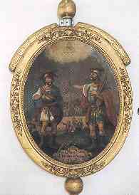 Die 2 klassizistischen Prozessionsstangen aus dem Ende des 18. Jahrhunderts tragen ovale Medaillonsbilder des hl. Aloysius (rückseitig Immakulata) und der Hl. Johannes und Paul (rückseitig Tod des hl. Franz Xaver). Die Aloisiusbruderschaft dürfte die eine Prozessionsstange geführt haben. Interessant ist die zweite: 3 Bauern, im Hintergrund Gehöfte, beten bei Schauerwetter zu den Hl. Johannes und Paul. Bei den Bittgängen, am "Schauerfreitag" und an Fronleichnam wurden die Prozessionsstangen getragen.