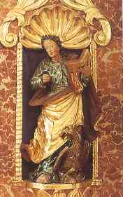 Holzstatuette des Evangelisten |